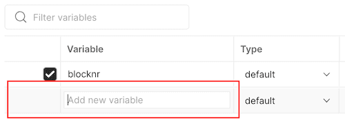 - Local variables: Temporary variables that can be used in a script. For example, the returned block number from querying a transaction can be a local variable. It exists only for that request, and it will change when fetching data for another transaction hash.